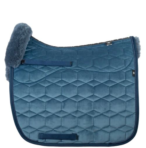 Lammfell: blau, Samt-Stoff: cornet blue, Kordel: marina, Gr. L/Dressur, Gr. M/Springen
