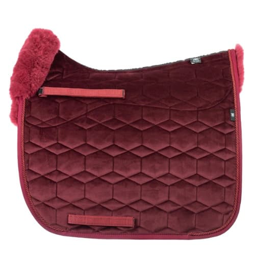 Lammfell: bordeaux, Samt-Stoff: bordeaux, Kordel: bordeuax, Gr. L/Dressur, Gr. M/Springen