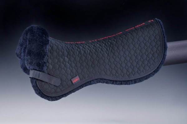Das Sattelkissen Ultra besteht auf der Unterseite aus echtem Lammfell mit einer Wollhöhe von 30mm, wobei der Bereich des Wirbelkanals freigelassen wird (wirbelsäulenfrei). Die Rückenlinie ist dem Pferderücken angepasst. Die Befestigung am Sattel erfolgt mit Klettstrupfen an den Gurtriemen des Sattels. Der verwendete Spezial-Satteldeckenstoff besteht aus mehreren Komponenten die miteinander versteppt sind. Vorne wird das Lammfell bis auf die Oberseite herumgezogen und dient als Sattelanlage. Maschinenwaschbar mit einem Lammfellwaschmittel sowie trocknerbeständig. Unsere Waschmittelempfehlung: CHRIST "C7".